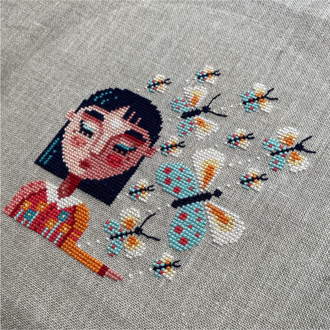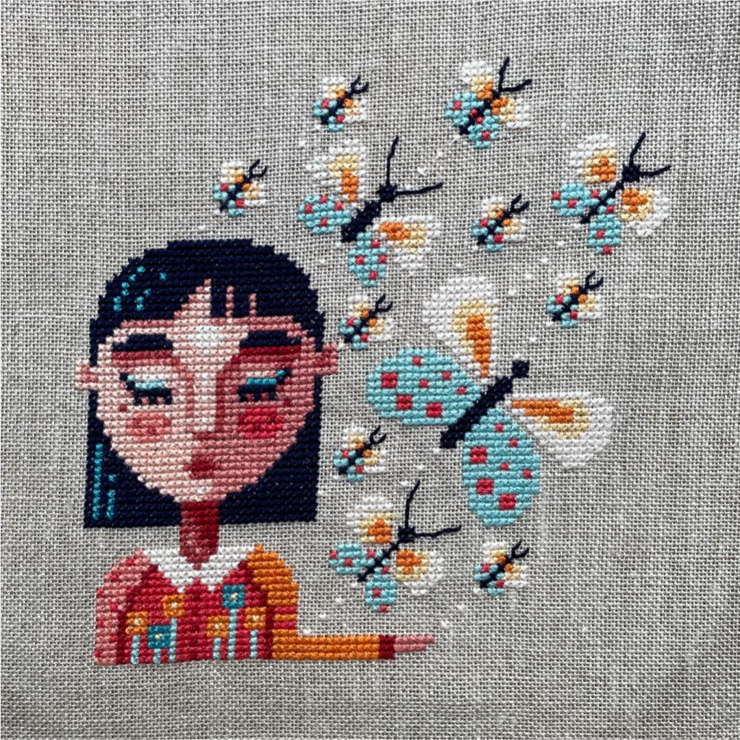 Endnu en skøn dame fra Barbara Ana – Denne gang en smuk sovende pige, der drømmer om sværme af elegante sommerfugle.