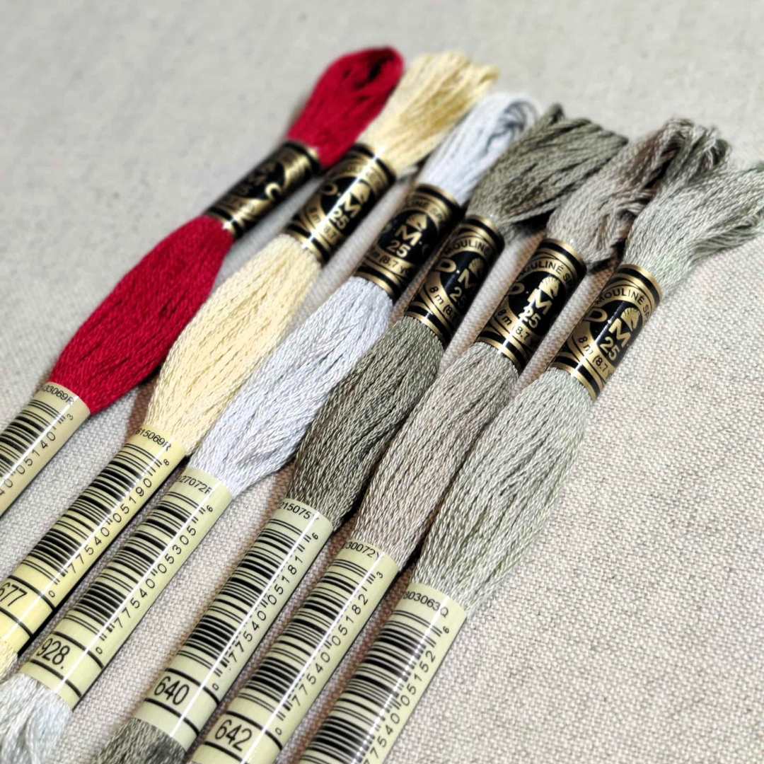 Broderiet sys med petit point på et sandfarvet etamine-stof 9 tr., og det færdige motiv måler ca. 17,5 × 17,5 cm. Du kan også vælge at montere det i en syring – tegn da syringens form op på stoffet og broder mønstret ud til kanten.