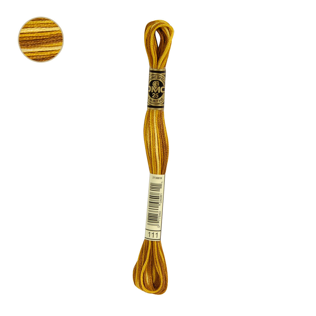 DMC Mouliné, “Amagergarn” – 111 er en varm og smuk ombre-farve, der gradvist skifter fra lys gul til varm brun. Farven er inspireret af tropiske græslandskaber og bærer en beroligende og intellektuel energi. Gult er kendt for at stimulere sindet, og gennem tiderne har det haft stor symbolik. Under Tang-dynastiet var det kun kejserne, der måtte bære denne farve, hvilket gør den både eksklusiv og historisk betinget. Brug denne farve til at tilføje dybde og varme til dine broderiprojekter.
