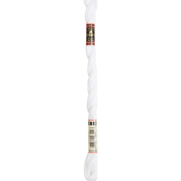 DMC Perlegarn No. 5 i farven Pearlescent White Light er et glansfuldt broderigarn i en klar hvid nuance med et let perlemorsagtigt skær. Garnet er fremstillet af 100 % bomuld og har en fast, rund struktur, som giver fyldige og tydelige sting i broderi.