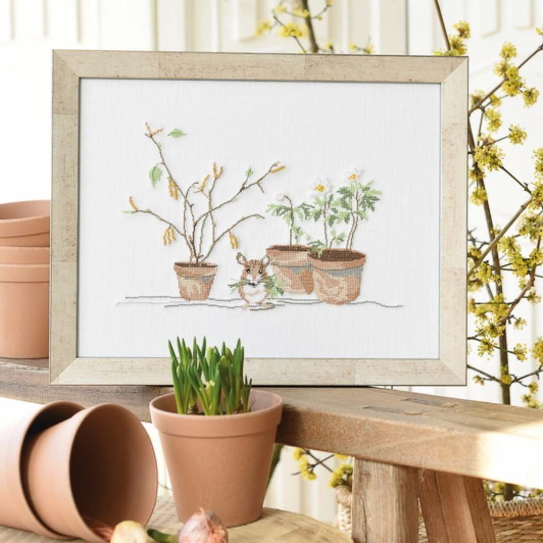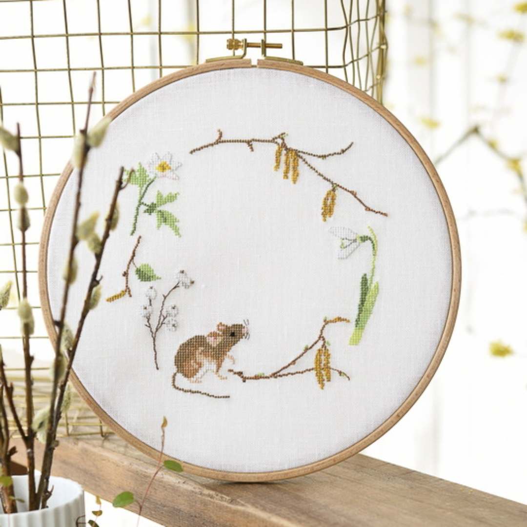 Bogen indeholder korsstingsmønstre med både natur- og dyremotiver. Du finder blandt andet slørugler, tidlige forårsblomster, blomsterenge, bier og humlebier. Motiverne er harmoniske og rolige og egner sig smukt til både indramning og sæsondekoration.