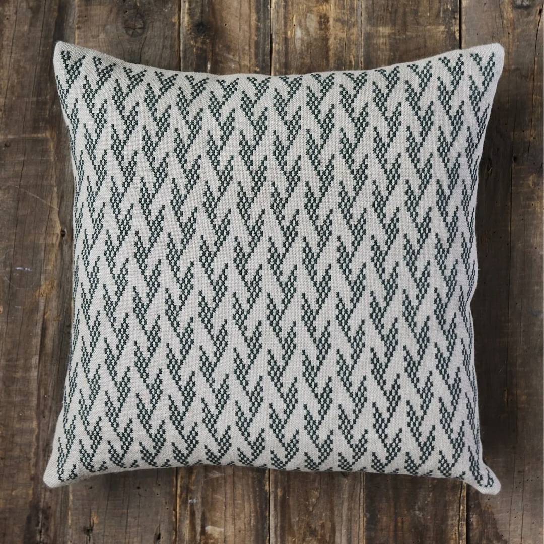 Mindful Green Art er en pude, hvor du broderer et enkelt, men effektfuldt mønster i korssting. Designet er skabt til at give en mindful oplevelse, hvor du hurtigt lærer gentagelsen i mønsteret og kan fordybe dig i de rolige sting. De grønne nuancer står smukt i kontrast til det naturlige hørlærred og giver et moderne, grafisk udtryk.