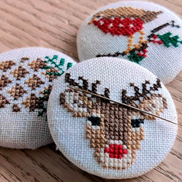 3 små skønne motiver som du kan brodere og montere som en nålemagnet eller måske vil du hellere brodere motiverne på en servietring en julekugle eller noget helt andet. Uanset får du mulighed for at vælge mellem et mønster som du selv downloader og printer ud eller en større pakke med alle materialer til 1 stk nålemagnet og mønster med alle tre motiver.