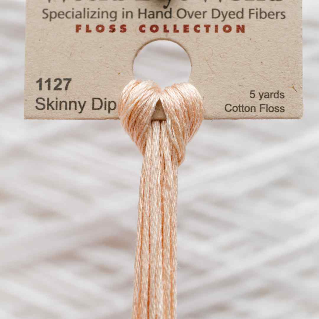 Weeks Dye Works – 1127, også kaldet Skinny Dip, er en sart beige nuance med en let varm undertone. Skinny Dip broderigarn giver et naturligt, blødt udtryk og er oplagt til projekter, hvor der ønskes en diskret, men harmonisk baggrundsfarve. Garnets lyse tone minder om strandens sand og giver et roligt fundament, som fremhæver stærkere farver i broderiet. Skinny Dip broderigarn kan bruges både alene for et minimalistisk udtryk eller som en neutral base i kombination med mere markante nuancer.