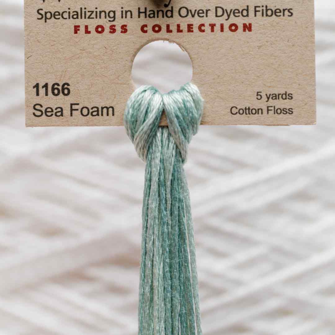 Weeks Dye Works – 1166, også kaldet Sea Foam, er en lys mintgrøn nuance med kølige blå undertoner. Farven minder om skummende bølger, der bryder mod kysten, og giver associationer til friskhed og lethed. Sea Foam broderigarn tilfører et luftigt og maritimt præg til dit broderi, ideelt til motiver inspireret af hav, himmel og botaniske detaljer. Med Sea Foam broderigarn skaber du en stemning af klarhed og kølig balance i dit projekt.