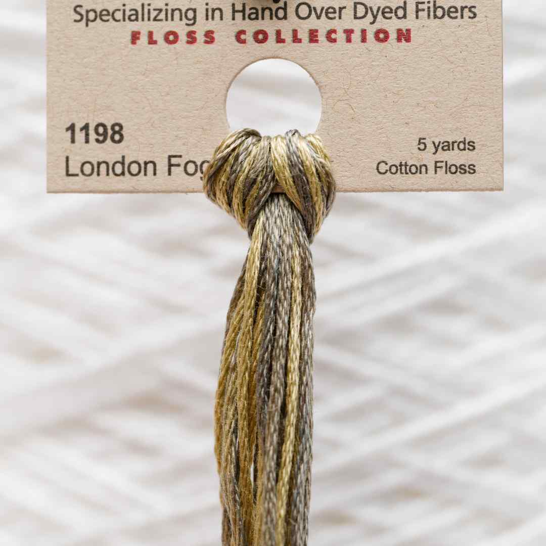 Weeks Dye Works – 1198, også kaldet London Fog, er en sofistikeret blanding af grå og dæmpede grønbrune toner, der minder om tågede morgener over storbyen. London Fog broderigarn skaber et subtilt og stemningsfuldt udtryk, perfekt til projekter hvor du ønsker en rolig, jordnær farve med dybde. Nuancen passer smukt til både naturinspirerede motiver og klassiske broderier, hvor dens bløde spil mellem gråt og brunligt tilfører en diskret elegance.