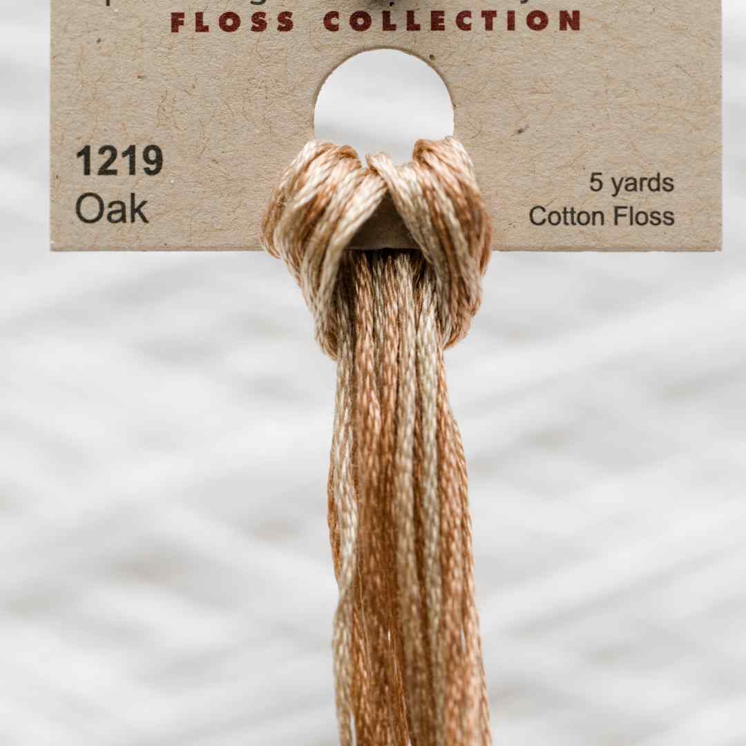 Weeks Dye Works – 1219, også kaldet Oak, er en varm beige-brun nuance, der minder om egetræets naturlige farvespil. Oak broderigarn har en jordnær karakter med fine skift mellem lyse og mørkere toner, hvilket giver en flot dybde i broderiet. Denne farve er velegnet til naturmotiver som blade, træstammer og landskaber, men fungerer også smukt som en neutral base i større projekter.