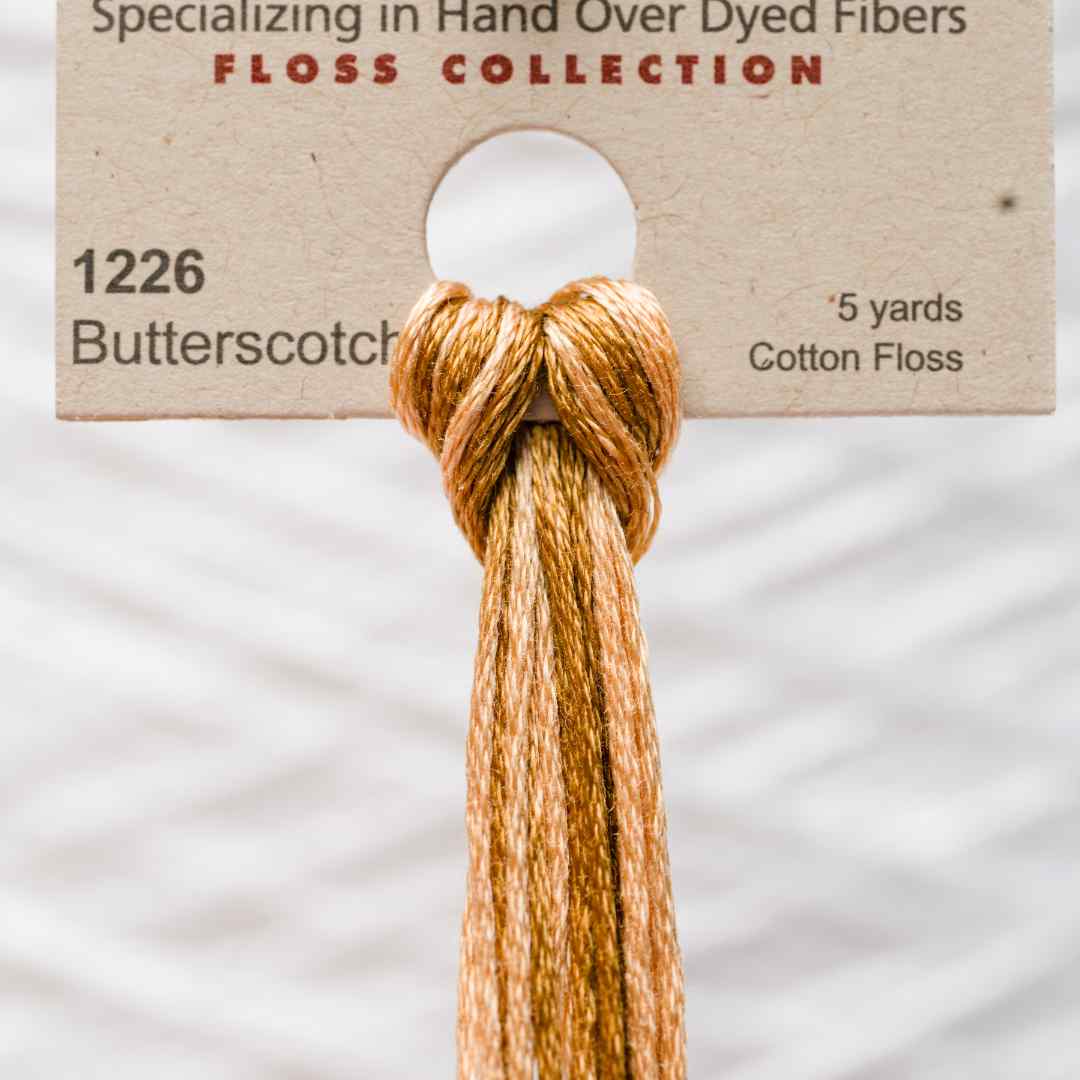 Weeks Dye Works – 1226, kaldet Butterscotch, er en varm karamelfarvet nuance med gyldne toner. Den er perfekt til efterårsmotiver, blomster og klassiske detaljer, hvor man ønsker varme og lys.
