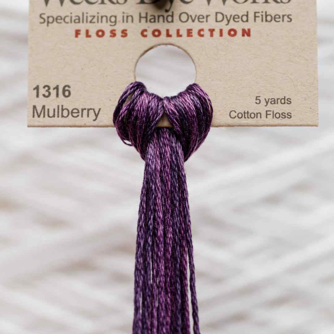 Weeks Dye Works – 1316, også kaldet Mulberry, er en dyb lilla nuance med toner af bær og mørke vinrøde skær. Mulberry broderigarn udstråler en intens og sofistikeret varme, der giver dit broderi både fylde og dybde. Garnet fungerer smukt til dramatiske detaljer, elegante blomster og klassiske ornamenter, hvor Mulberry broderigarn tilfører en fornemmelse af luksus og raffinement.