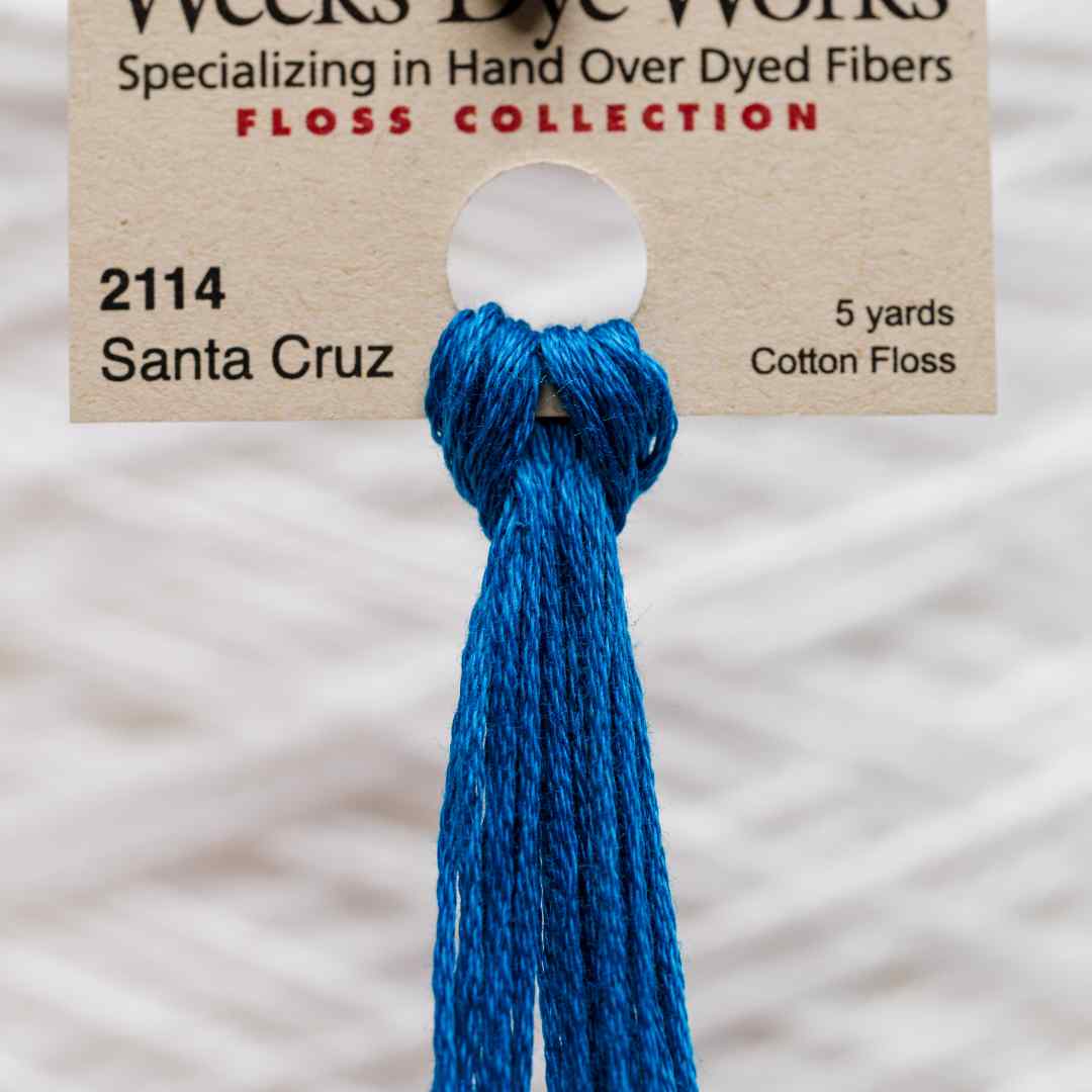Weeks Dye Works – 2114, også kaldet Santa Cruz, er en dyb og klar blå farve med en rig intensitet, der leder tankerne mod havets dybde. Santa Cruz broderigarn tilfører styrke og dybde til dit broderi. Med Santa Cruz broderigarn giver du dit projekt et levende og markant udtryk.