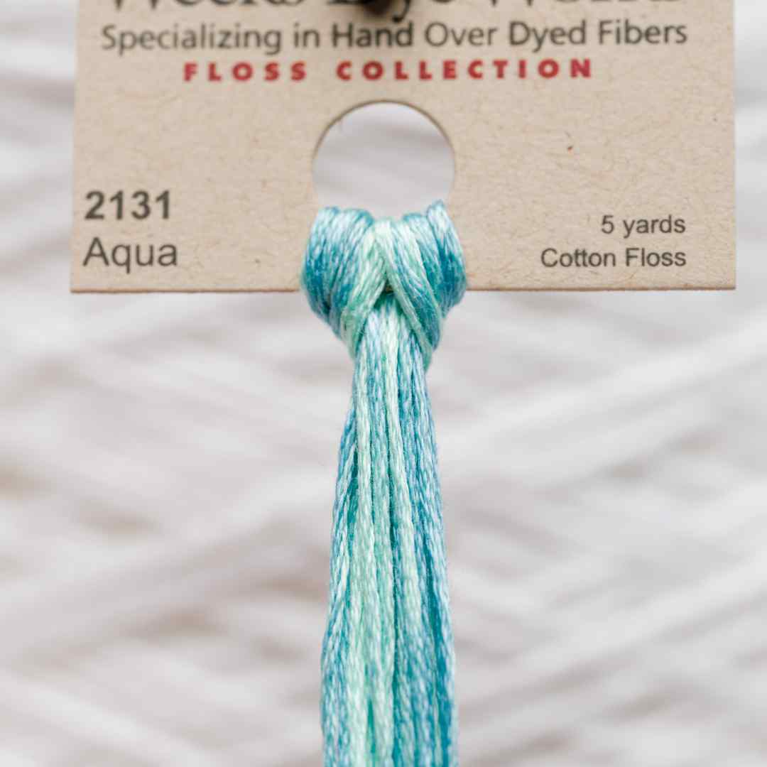 Weeks Dye Works – 2131, også kaldet Aqua, er en klar blågrøn nuance med spil fra lys turkis til dybere akvatoner. Aqua broderigarn tilfører friskhed og et vandinspireret udtryk, oplagt til havmotiver, himmel eller detaljer, der skal have et køligt præg. Med Aqua broderigarn giver du dit projekt en følelse af lethed og ren energi.