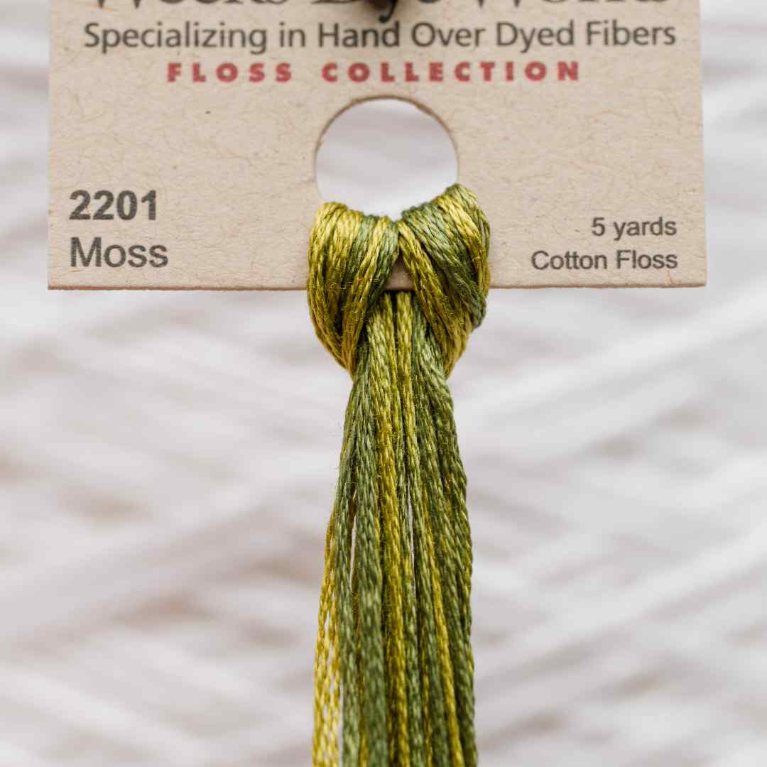Weeks Dye Works – 2201, også kaldet Moss, er en naturlig grøn nuance med spil af både dybe mosfarver og lysere grønne toner. Moss broderigarn giver et autentisk, organisk udtryk, der leder tankerne hen på skovbund, mosbeklædte sten og naturens rolige stemning. Farven er ideel til landskabsmotiver, botaniske detaljer eller projekter, der skal have et levende, men jordnært præg. Med Moss broderigarn får dit broderi en fin balance mellem friskhed og dybde.