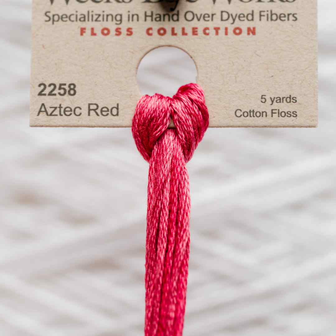 Weeks Dye Works 2258 Aztec Red er en intens og varm rød nuance, der emmer af energi og styrke. Farven er dyb og levende, hvilket gør den ideel til blomster, hjerter, dekorationer og projekter, hvor du ønsker en markant og iøjnefaldende detalje. Variationerne i farven giver broderiet spil og liv, så resultatet bliver unikt hver gang.