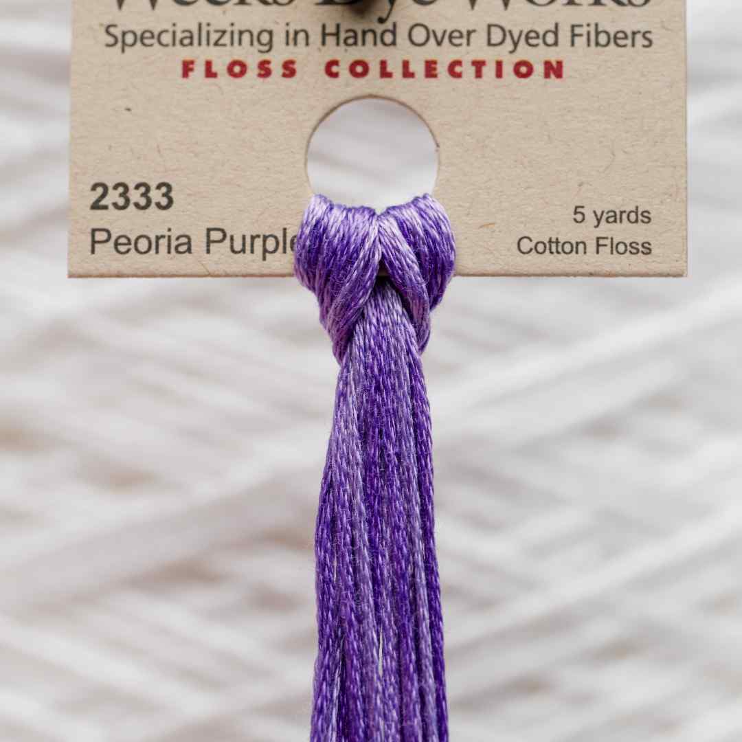 Weeks Dye Works – 2333, også kaldet Peoria Purple, er en levende lilla nuance med spil fra lys lavendel til dybere violet. Farven udstråler kreativitet, mystik og elegance og leder tankerne til blomster som lavendel og iris samt aftenhimlens lilla skær. Garnets subtile variationer giver et dynamisk og iøjnefaldende udtryk.